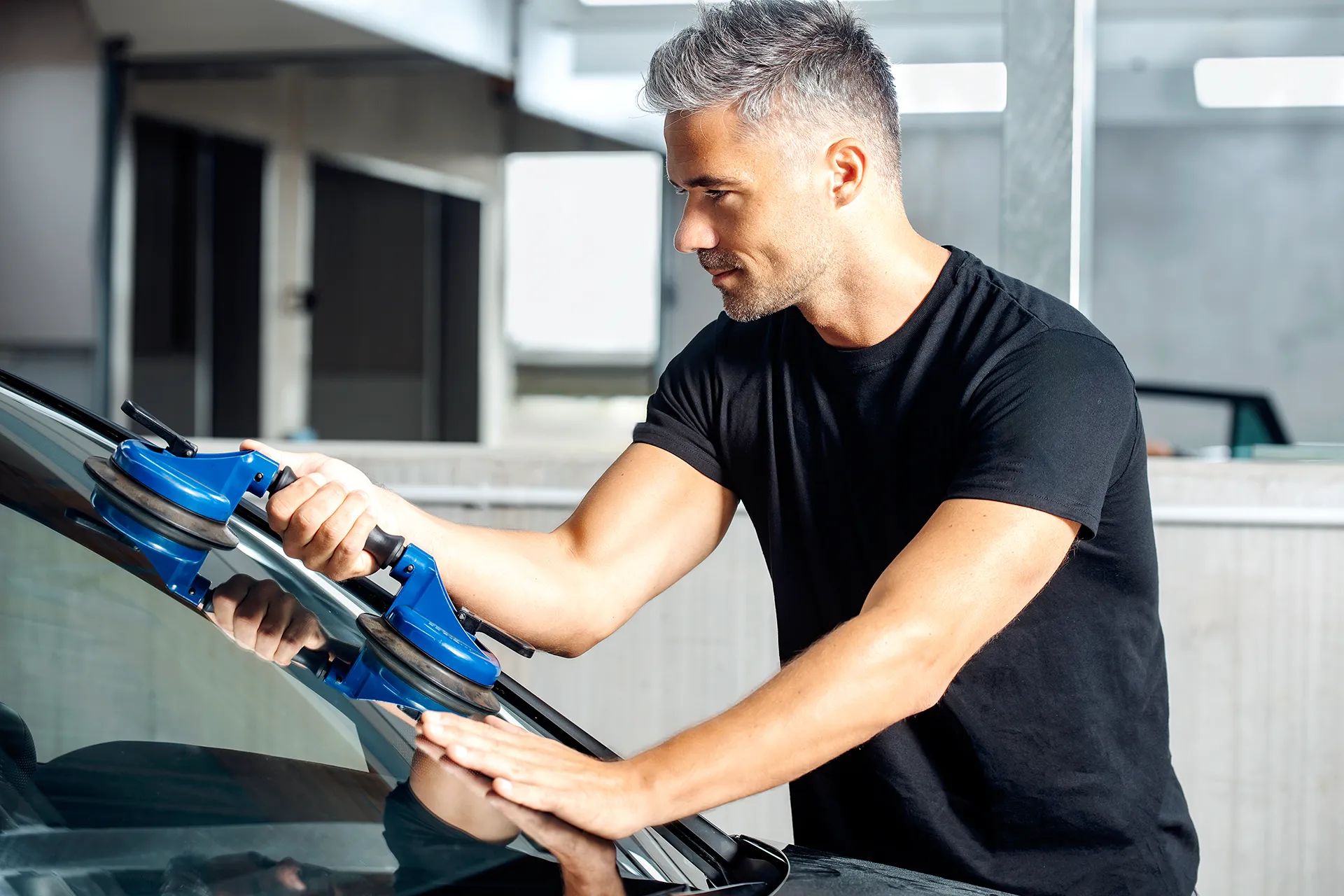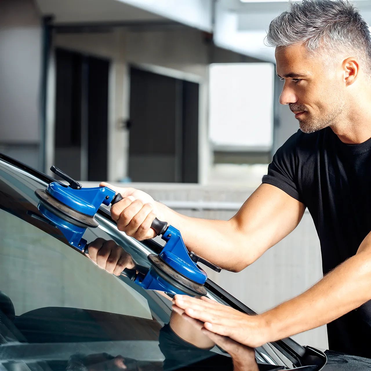 - Einbau der neuen Scheibe: Mit dem Einsatz hochmoderner Geräte wird die neue Windschutzscheibe schließlich präzise eingesetzt und professionell verklebt.